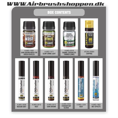 Giv dine moderne militærfartøjer liv med ultrarealistiske weatheringeffekter ved hjælp af dette brugerdefinerede sæt. Det er designet til at hjælpe dig med at mestre en bred vifte af teknikker, herunder: