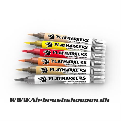Dette sæt indeholder seks yderst nyttige farver, der almindeligvis bruges til at male menneskefigurer i en række forskellige spil. Farverne kan kombineres med andre Playmarkers og maling for at opnå en endnu større variation af toner og effekter.