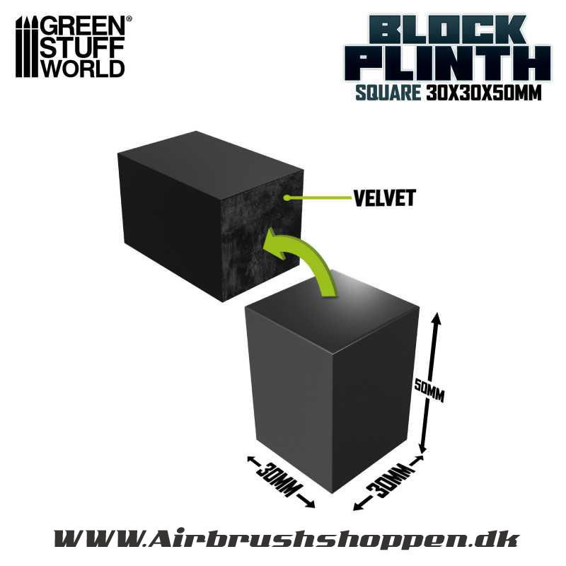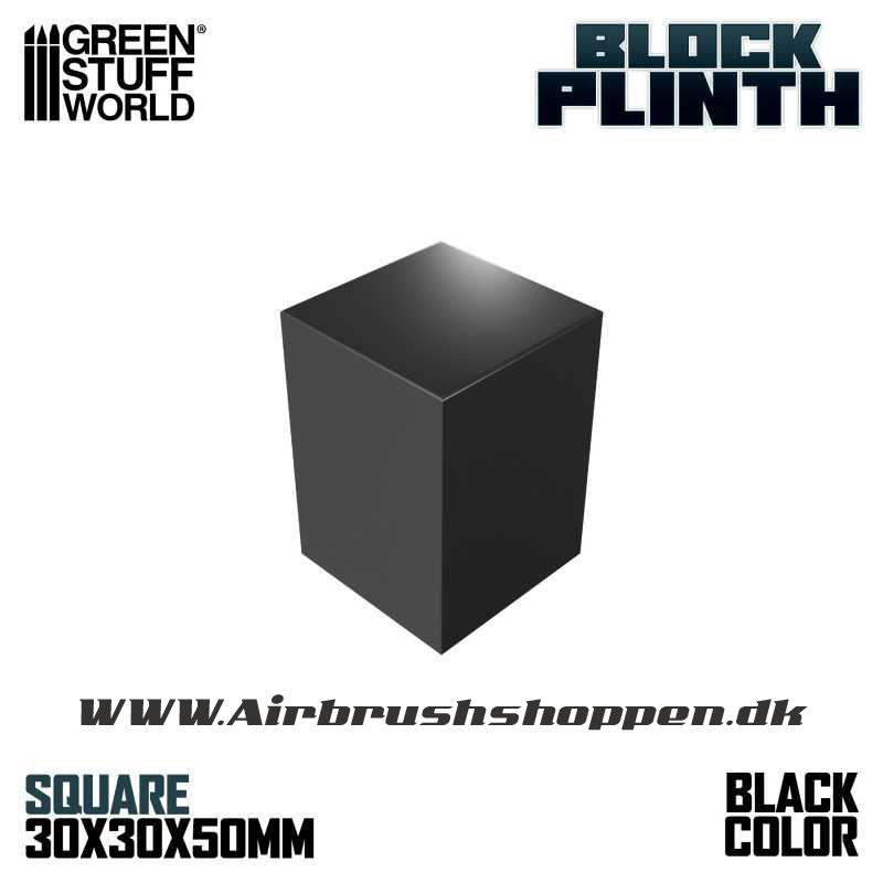 Displayblok lavet af MDF-træ i farven sort med lakeret finish, ideel til udstilling af dine figurer. Basen er færdig med en blød sort filtunderside for et skridsikkert og overfladevenligt greb.