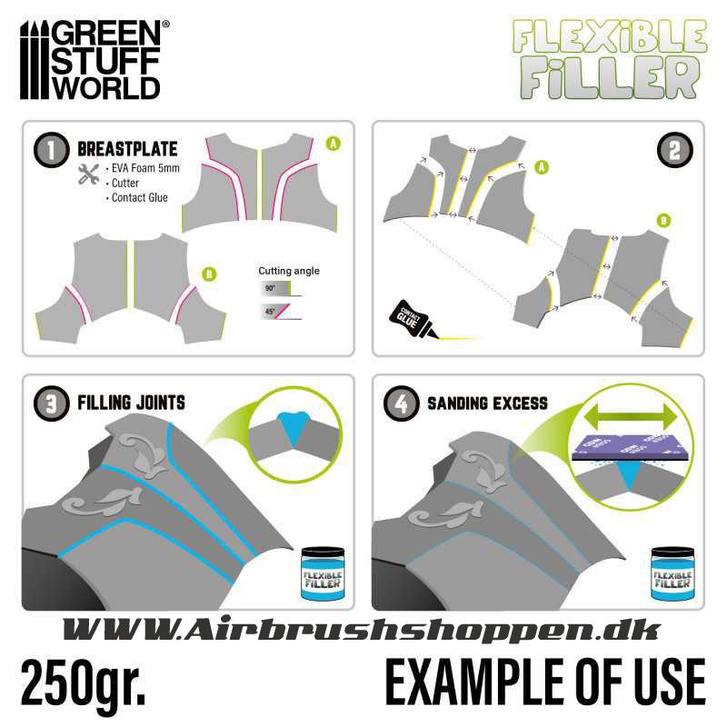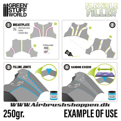 En fleksibel filler er et specialiseret akrylbaseret materiale, der er designet til at udfylde sømme, huller og ufuldkommenheder i cosplay-materialer som EVA-skum og termoplast, samtidig med at det bevarer både sin fleksibilitet og lethed at slibe. I modsætning til traditionelle fyldstoffer, der kan blive sprøde, er GSW fleksibel filler formuleret til at bøje og bevæge sig med overfladen, hvilket gør den ideel til skumbaseret rustning, våben og rekvisitter.